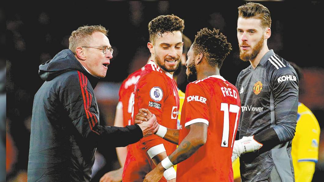 Rangnick, no pudo contar con Cavani, Pogba, Shaw ni Varane (lesionados) y repitió el once que derrotó al Arsenal (3-2) en el último partido de Michael Carrick.