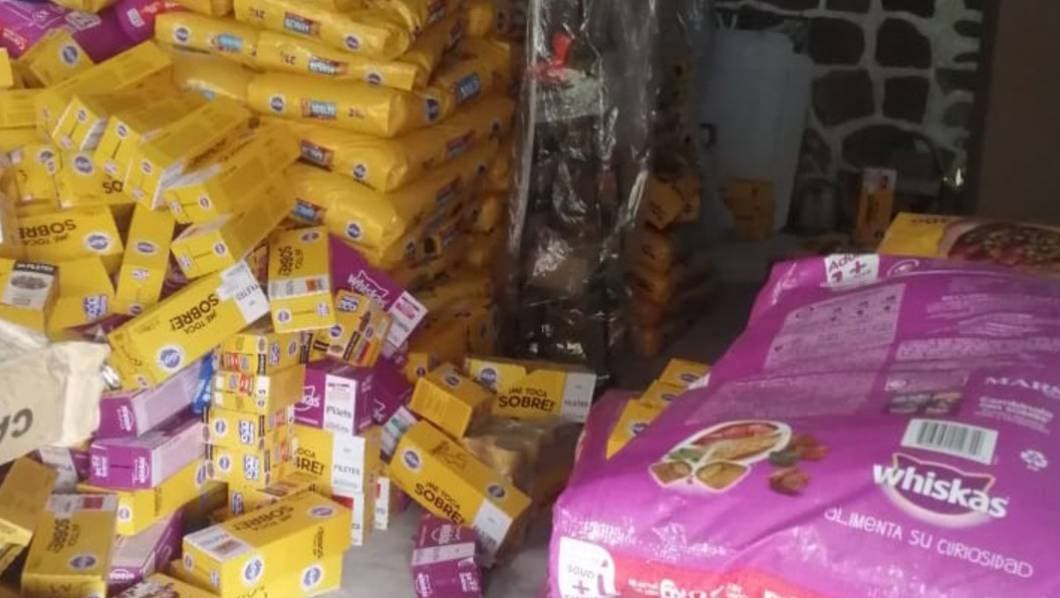 Ahí, la AIC y Peritos aseguraron y embalaron alimento para perro y gato, empaquetado tanto en cajas como en bultos, en presentaciones de sobres, bolsas y latas con alimento para perros y gatos, haciendo un total de poco más de seis toneladas en producto, con valor comercial superior a los 233 mil pesos.