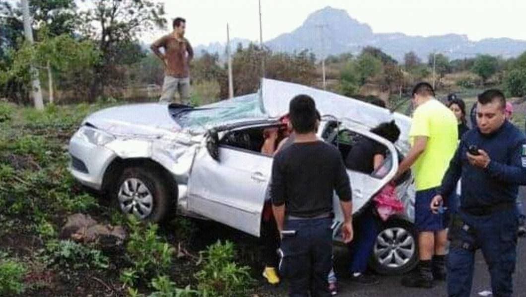 En la carretera federal Cuernavaca Tepoztlán, cerca de Santa Catarina, se registró esta tarde una voladura de un auto Gol.