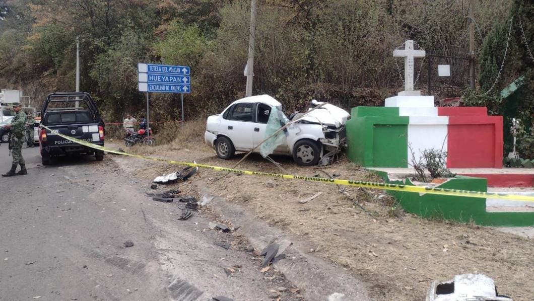 Eran las 11:45 horas cuando los servicios de emergencias recibieron el reporte de que un camión de volteo que bajaba de Tetela del Volcán hacia Ocuituco se había quedado sin frenos e impactó a un Chevy que circulaba precisamente hacia Tetela.