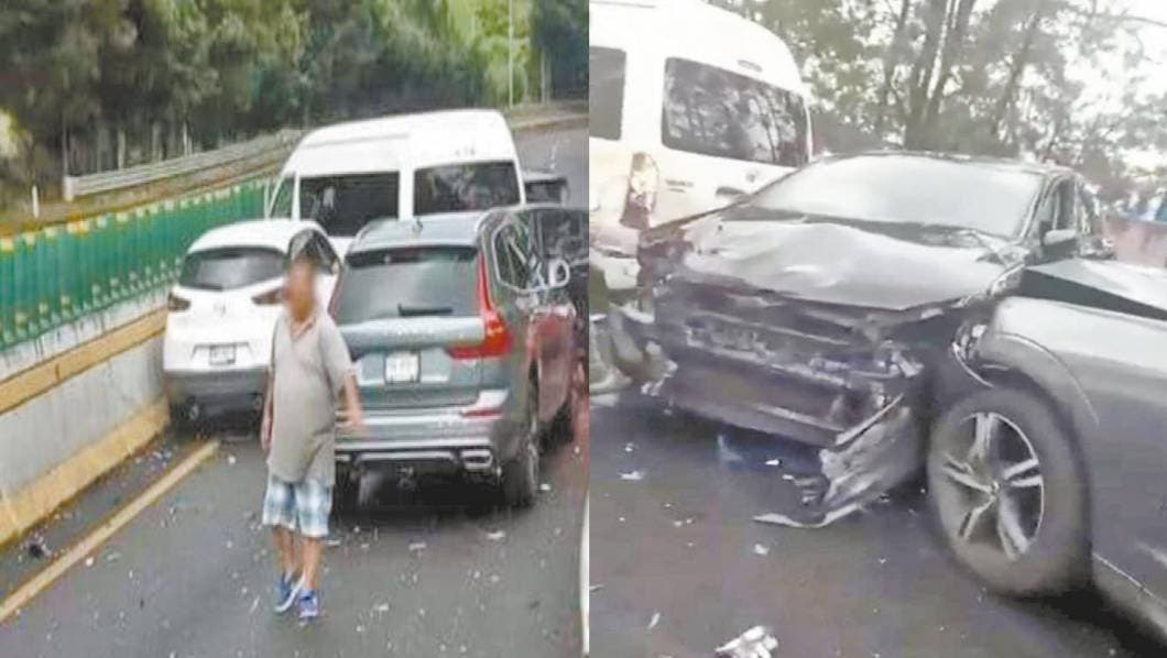 Eso ocasionó que una camioneta de pasajeros Toyota blanca chocara contra este auto y posteriormente se impactaron un Polo y dos camionetas más.