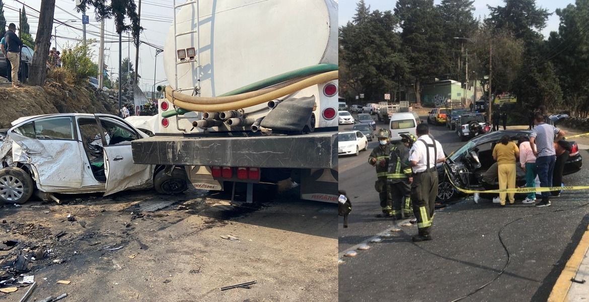 De acuerdo con versiones preliminares, el conductor de la pipa circulaba a exceso de velocidad y de bajada sobre el carril de alta con rumbo hacia Tlalpan, cuando en una curva se impactó de frente con los dos vehículos.