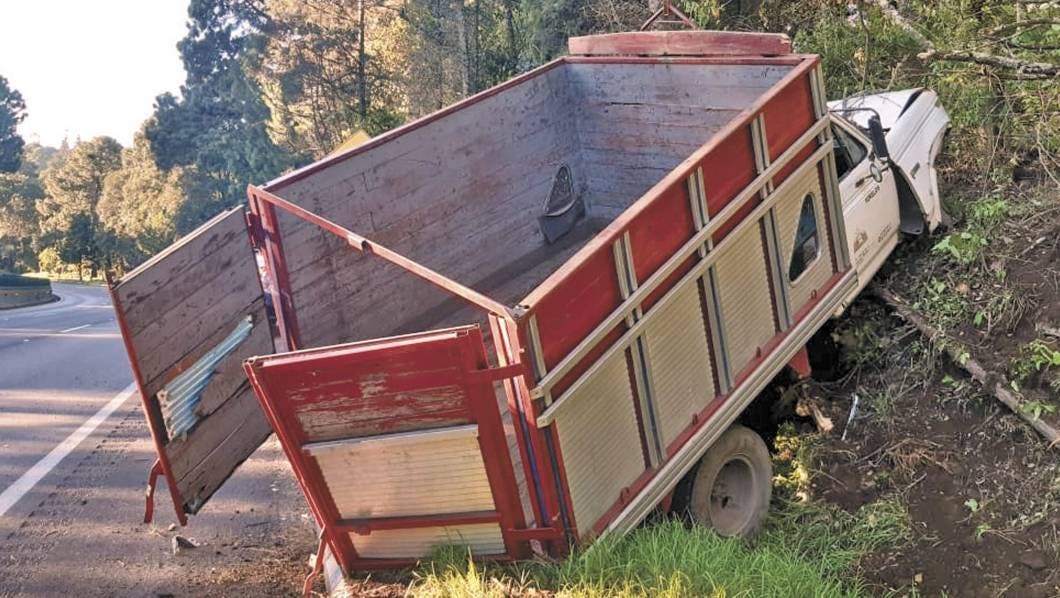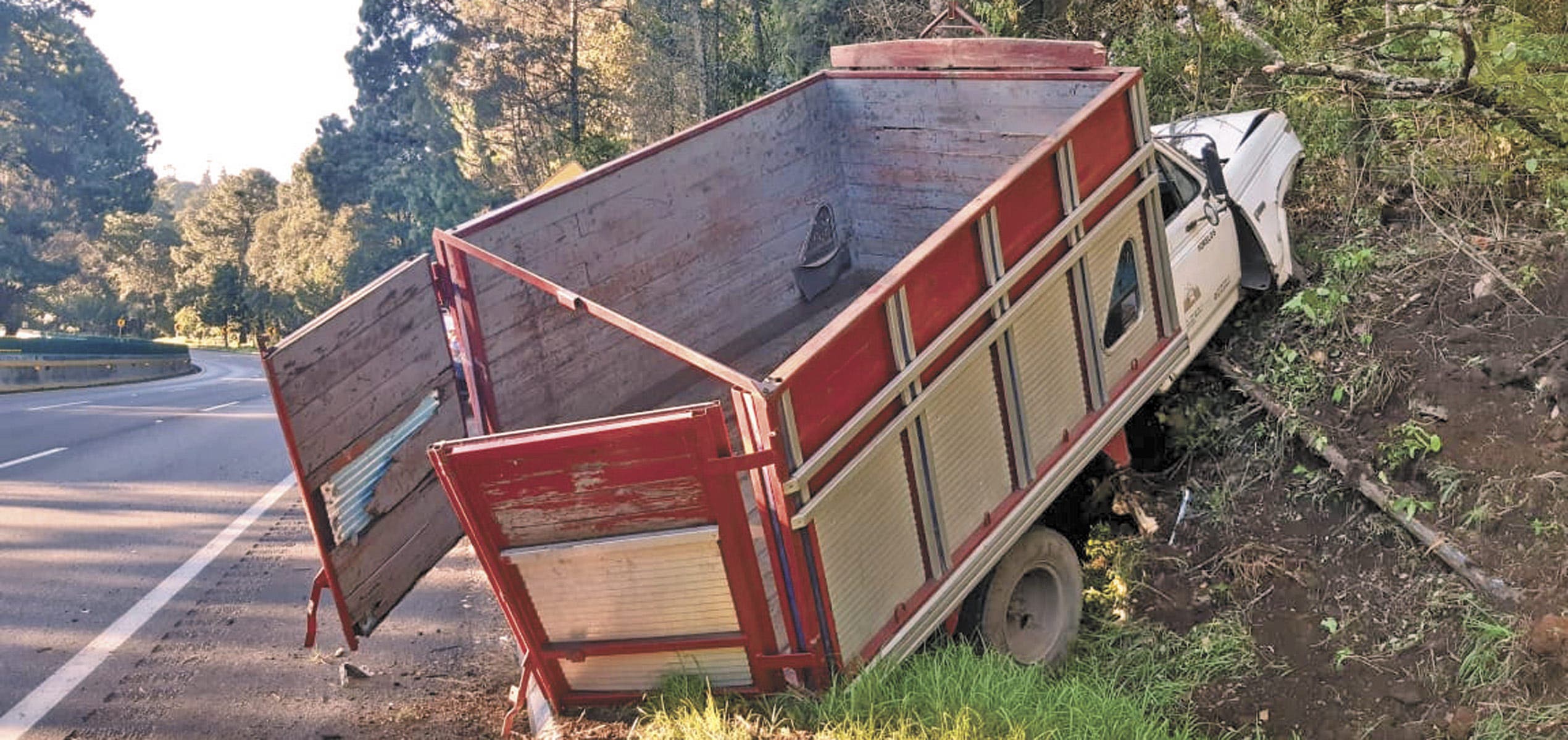 Fue a la altura del poblado de Coajomulco donde una de las llantas de la camioneta de redilas sufrió una falla, por lo que el conductor perdió el control, se impactó contra el muro de contención, salió proyectado contra la Urvan que circulaba por el carril de baja velocidad y finalmente volcó sobre el acotamiento.