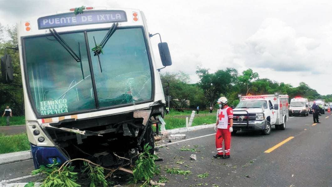 Puente de Ixtla, MORELOS.- Una mujer y un menor de edad murieron tras un choque entre un autobús de pasajeros y un auto ocurrido la tarde de ayer en la colonia El Naranjo; cuatro personas resultaron lesionadas.
