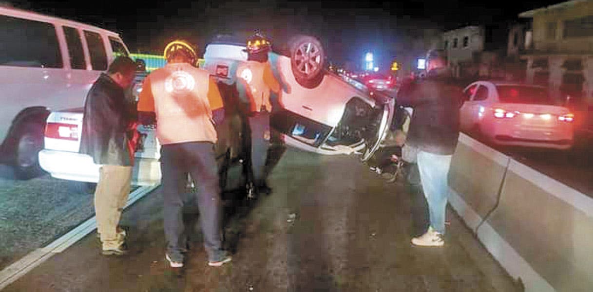 Sin embargo, el conductor de un taxi Tsuru que iba detrás de la troca no alcanzó a frenar ya que también rebasó los límites de velocidad e impactó las barras de concreto al tratar de esquivar la unidad volteada.