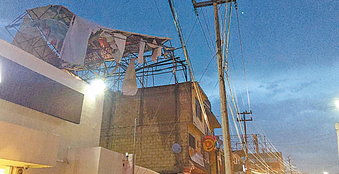 Espectaculares despedazados y uno a punto de colapsar en bulevar Cuauhnáhuac, metros adelante de bomberos de Civac, así como la caída del semáforo que está en la base de dichos vulcanos, además de cuatro árboles que se desplomaron en dicha vialidad, fueron parte de los daños que dejó la lluvia en Jiutepec.