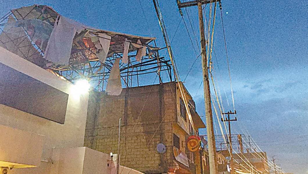 Espectaculares despedazados y uno a punto de colapsar en bulevar Cuauhnáhuac, metros adelante de bomberos de Civac, así como la caída del semáforo que está en la base de dichos vulcanos, además de cuatro árboles que se desplomaron en dicha vialidad, fueron parte de los daños que dejó la lluvia en Jiutepec.