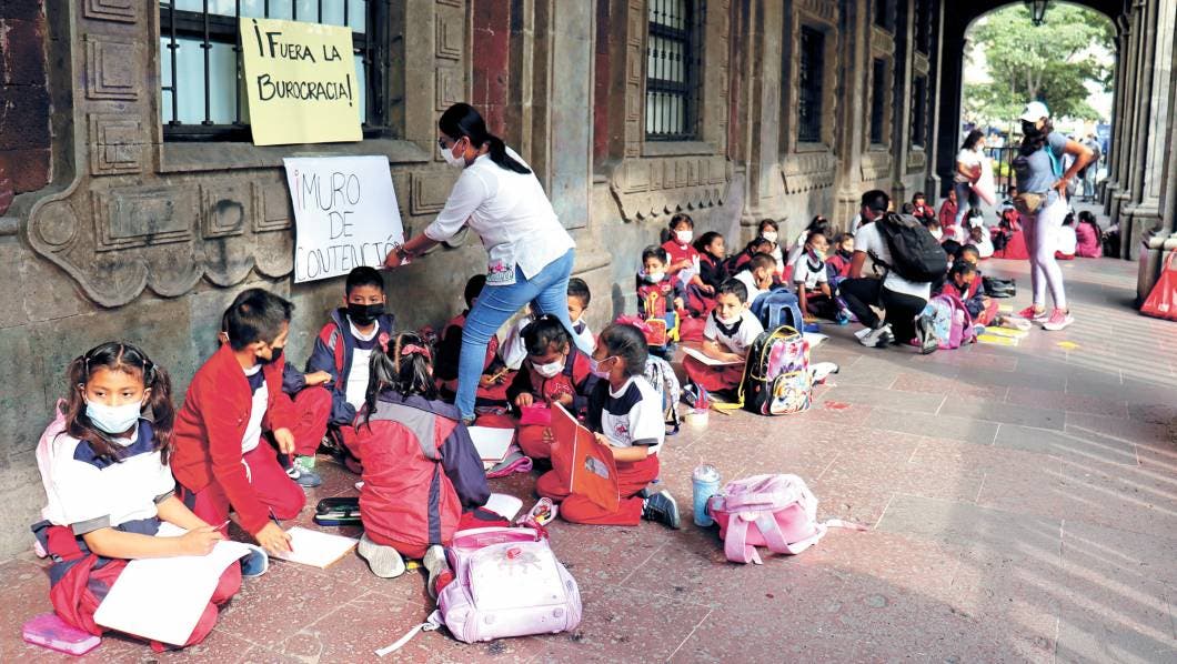 Mientras en la calles del centro era un caos, varios grupos de niños recibían clase en los pasillos del Palacio de Gobierno también como medida de protesta.