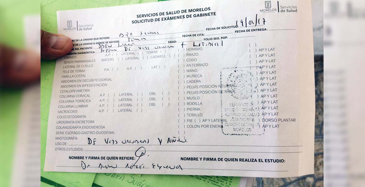 Relató que el pasado 19 de enero acudió al Centro de Salud que se ubica en la colonia Alta Palmira de Temixco, "en la consulta expliqué que mi condición de salud y mi preocupación al orinar sangre. Me enviaron al Hospital General de Temixco para que me realizaran un ultrasonido, la cita me la dieron para el 24 de marzo, es decir hoy (ayer)".