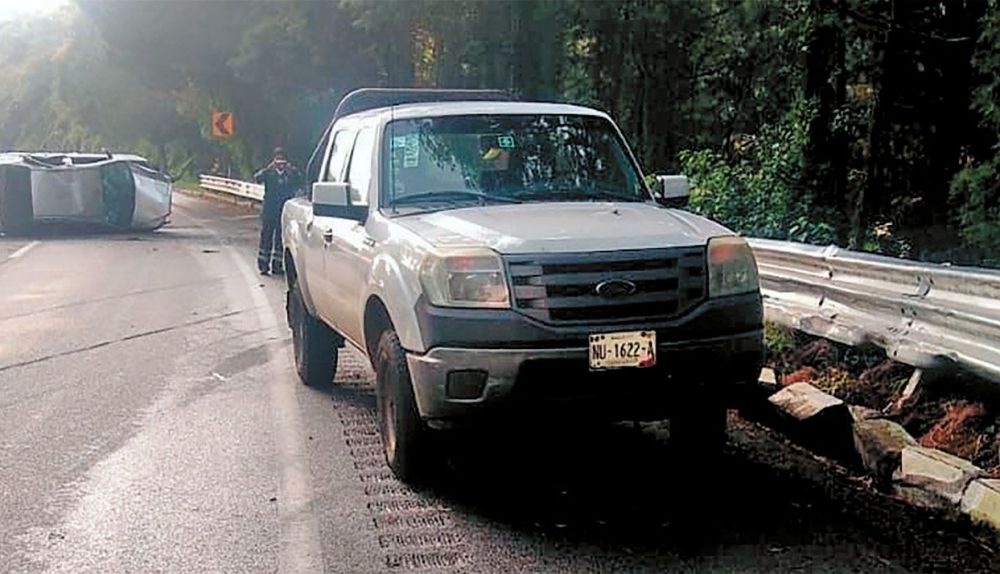 Autoridades federales mencionaron que una camioneta Ranger blanca, con placas de Morelos, derrapó y giró sobre ambos carriles de la autopista debido al pavimento mojado y al posible exceso de velocidad.