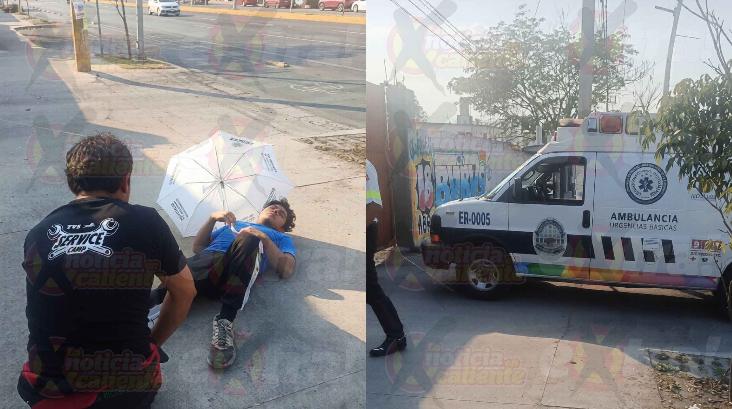 Tras el reporte al número de emergencias, paramédicos voluntarios fueron los primeros en arribar al sitio para valorar al lesionado. El joven presentaba escoriaciones en diversas partes del cuerpo, aunque se mantuvo consciente tras el impacto.