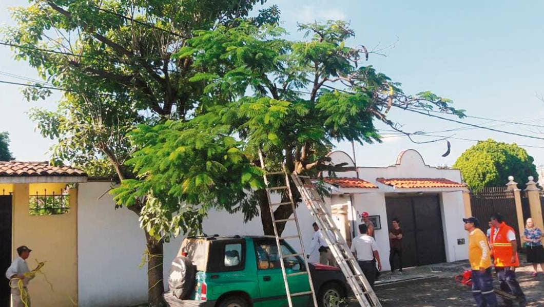 Personal de Protección Civil retiró un árbol ubicado en la calle Nueva Rusia, en Lomas de Cortés, el cual estaba a punto de caer sobre un vehículo que se encontraba estacionado a su sombra.