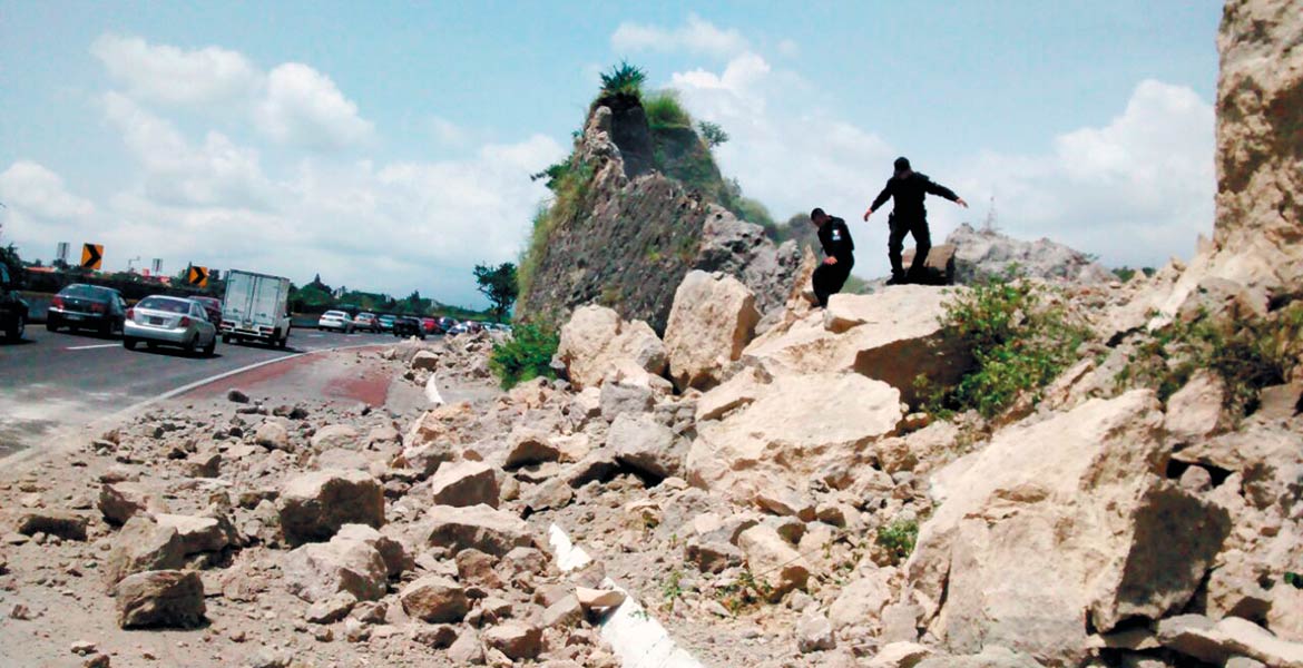 Caos vehicular ocasionó el derrumbe de un cerro, cuyas piedras cayeron sobre el carril de baja velocidad en la autopista México-Acapulco, entre el fraccionamiento Brisas de Temixco y El Polvorín en Cuernavaca.