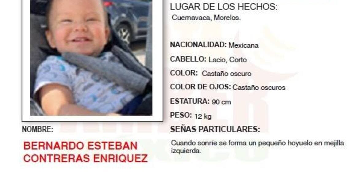 De acuerdo con la ficha emitida por la Fiscalía General del Estado, se busca al pequeño Bernardo Esteban Contreras Enríquez, de 1 año de edad.