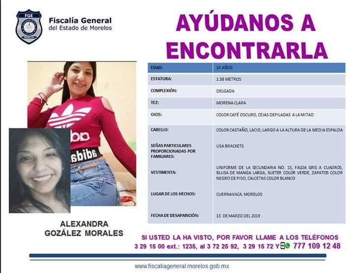 Por su parte, la segunda menor es Alexandra "N", de la misma edad, mide 1.58 metros, complexión delgada, tez morena, ojos café oscuro, cabello castaño y largo.