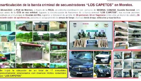 - En un comunicado emitido por la Fiscalía General del Estado de Morelos, se informa de la desarticulación de la banda denominada "Los Capetos" que operaba en el estado.