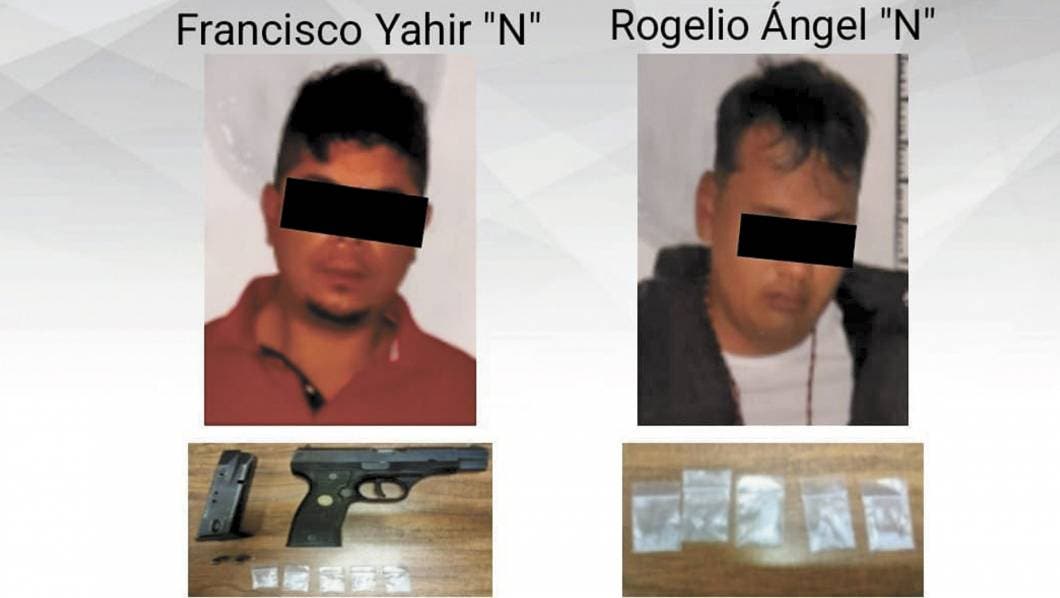 De acuerdo con la Comisión Estatal de Seguridad (CES), Francisco Yahir, de 36 años; y Rogelio Ángel, de 25, fueron puestos a disposición del Ministerio Público por delitos contra la salud, violación a la Ley Federal de Armas de Fuego y Explosivos y/o lo que resulte.