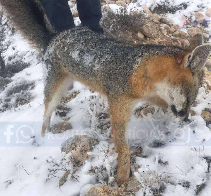 “Congelado y de pie, fue localizado un Zorro cercano a una mina. Tal parece que el Zorro fue sorprendido por la gran ola de frío de hasta -18° que lo congeló al instante. “, escribieron en la página de Facebook, ‘Frontera Noticias Online’.