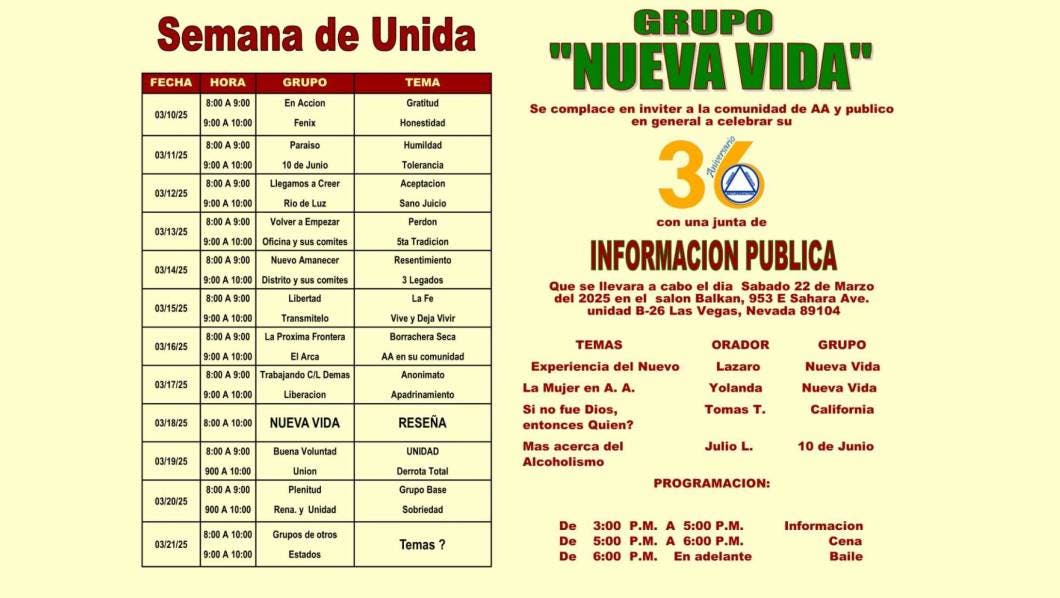 El grupo de Alcohólicos Anónimos Nueva Vida recientemente celebró su trigésimo sexto aniversario salvando vidas en Las Vegas, Nevada.
