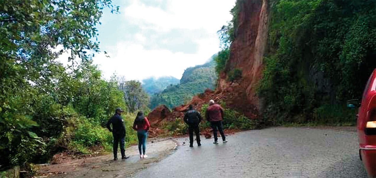 Tetela del volcán, MORELOS.- Completamente cerrada a la circulación quedó la carretera local Tetela del volcán-Hueyapan, luego de desgajarse una parte del cerro, a un costado de la carretera.