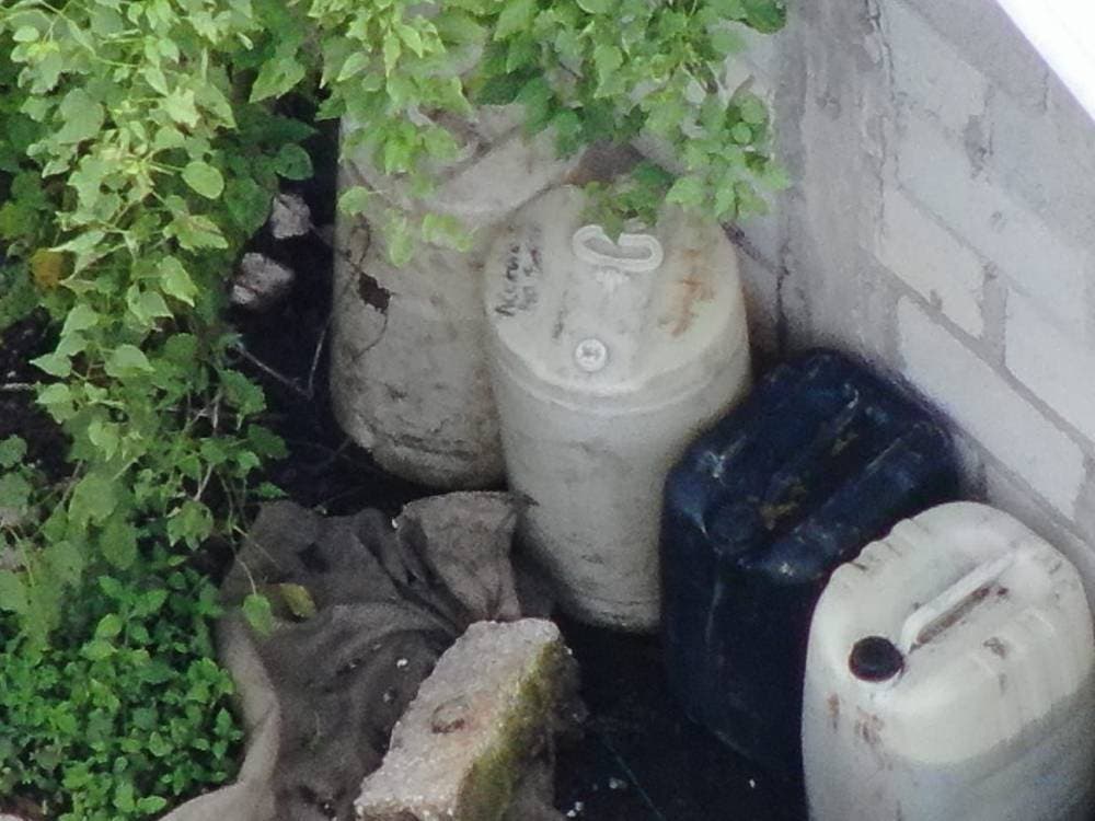 -19 contenedores de 200 litros cada uno, sumando 3,800 litros de sustancia líquida por determinar.