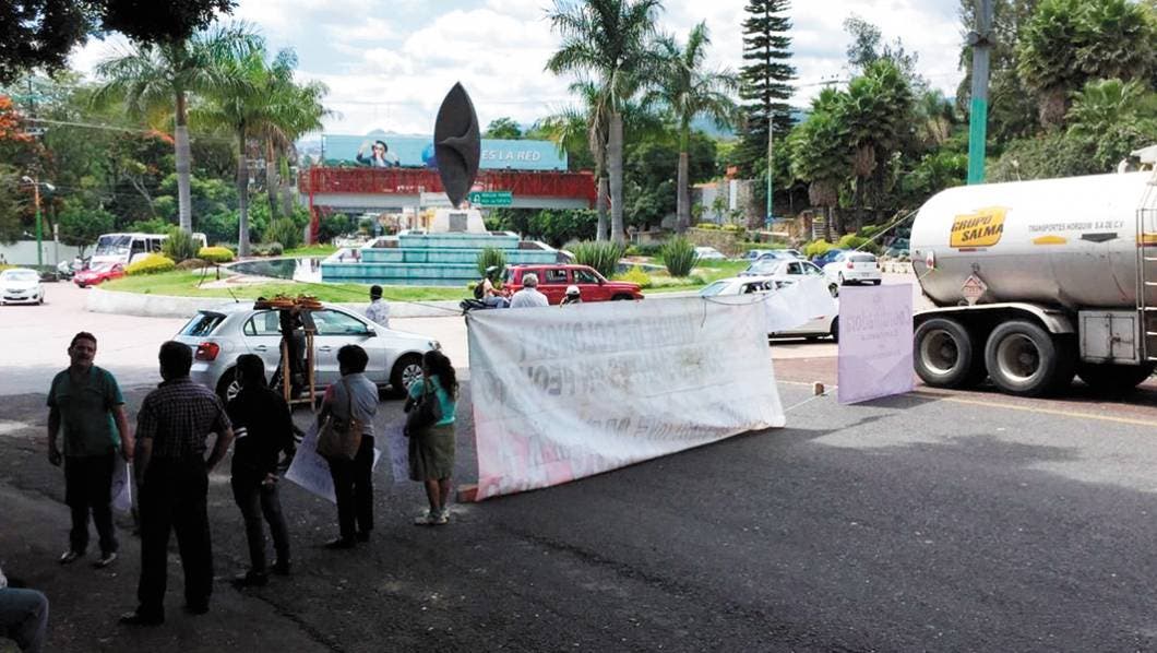Los manifestantes formaron una valla y con pancartas impidieron la circulación de autobuses y vehículos particulares, por lo que se tuvo que implementar un operativo vial para dirigir el tránsito por la carretera federal hacia Tres Marías.