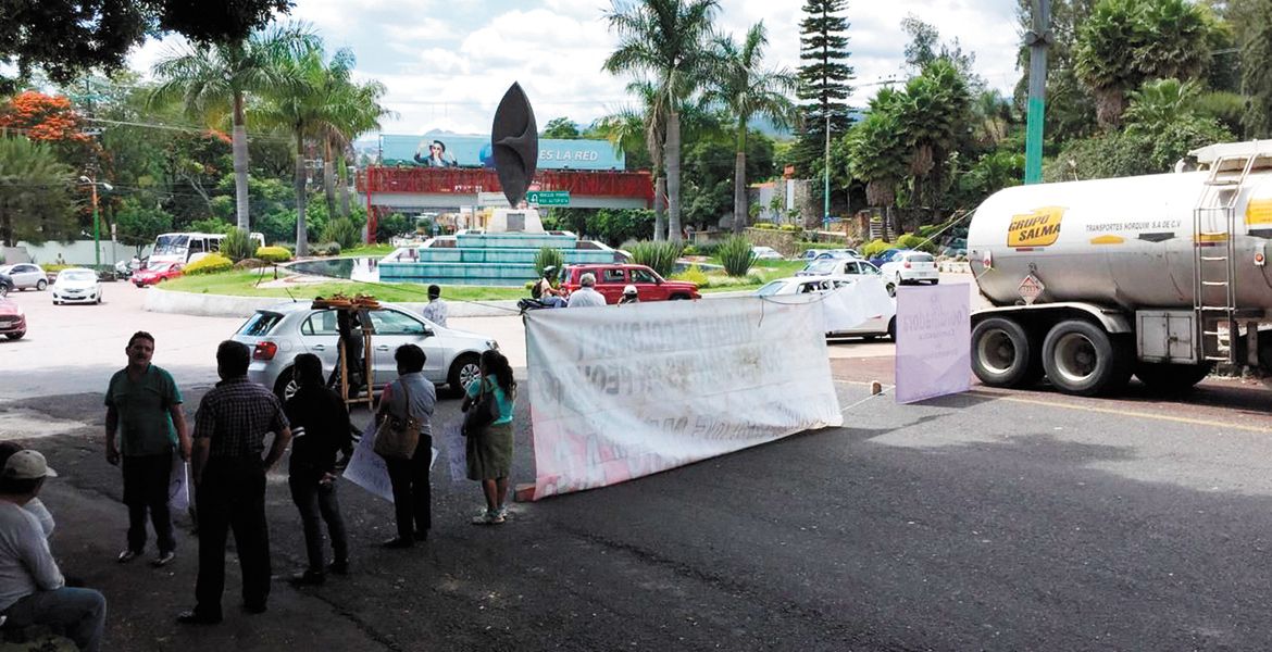 Los manifestantes formaron una valla y con pancartas impidieron la circulación de autobuses y vehículos particulares, por lo que se tuvo que implementar un operativo vial para dirigir el tránsito por la carretera federal hacia Tres Marías.