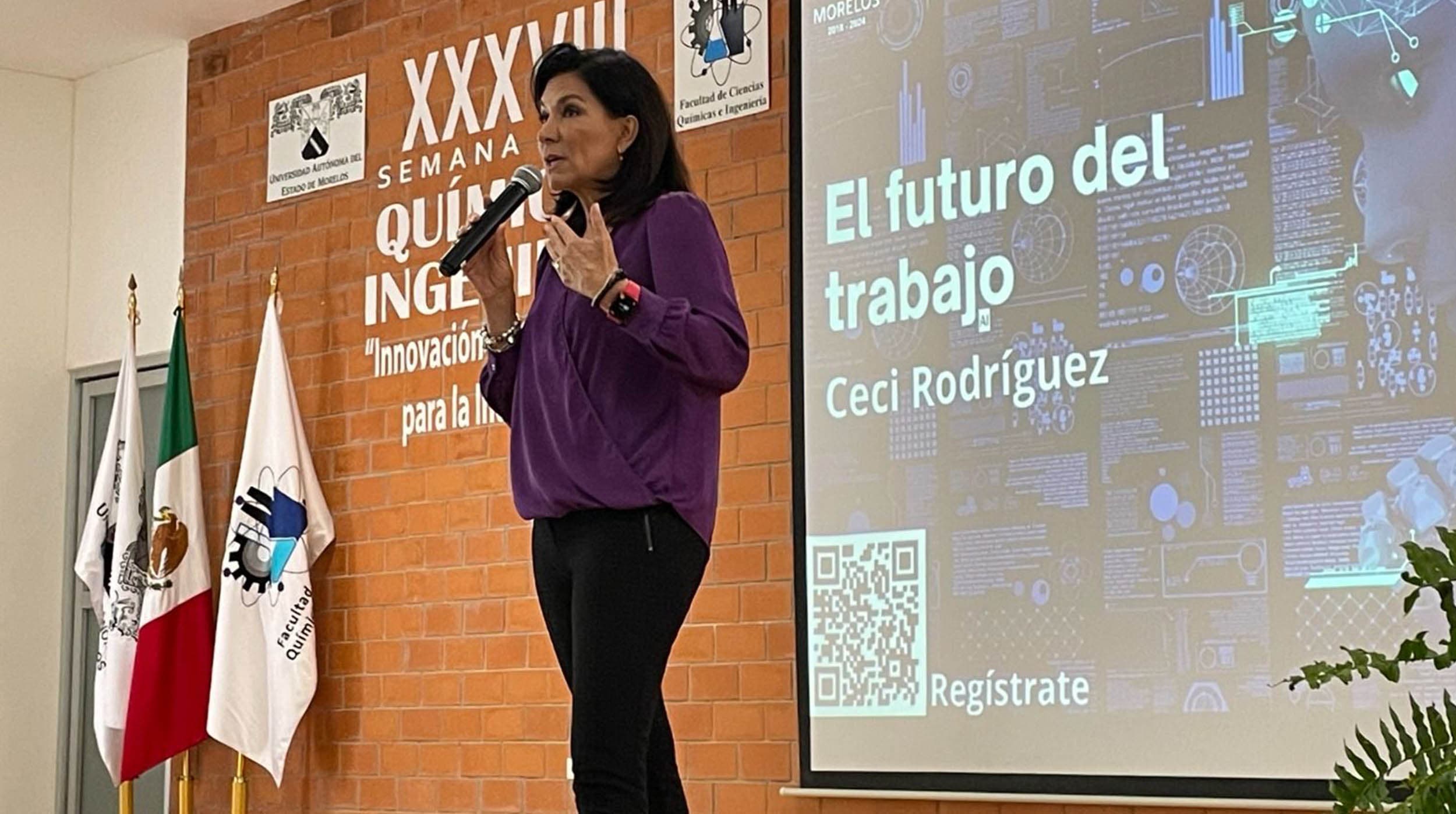 Mediante la conferencia magistral que impartió, la funcionaria destacó que desde el Consejo de Ciencia y Tecnología del Estado de Morelos se han creado convocatorias para promover e incentivar el desarrollo de habilidades de la juventud para aumentar la probabilidad de éxito en el futuro del trabajo.
