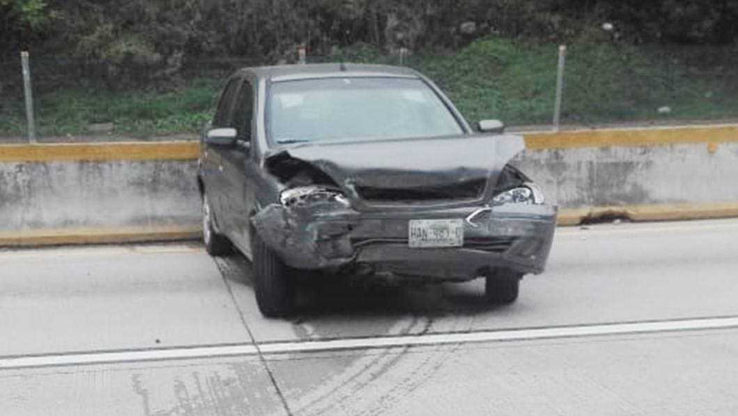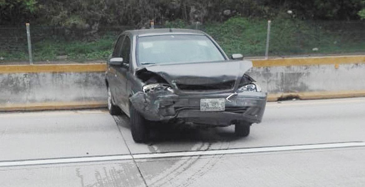 Un auto Chevy Monza, color gris, terminó con el cofre destrozado, tras impactarse contra el muro de contención, luego de que el conductor perdiera el control cuando circulaba por la autopista México–Cuernavaca, a la altura del poblado de Chamilpa, en Cuernavaca.
