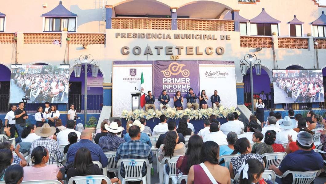 El presidente municipal de Coatetelco, Luis E. Onofre Jiménez, rindió su Primer Informe de Gobierno ante miles de ciudadanos y en cumplimiento de la ley.
