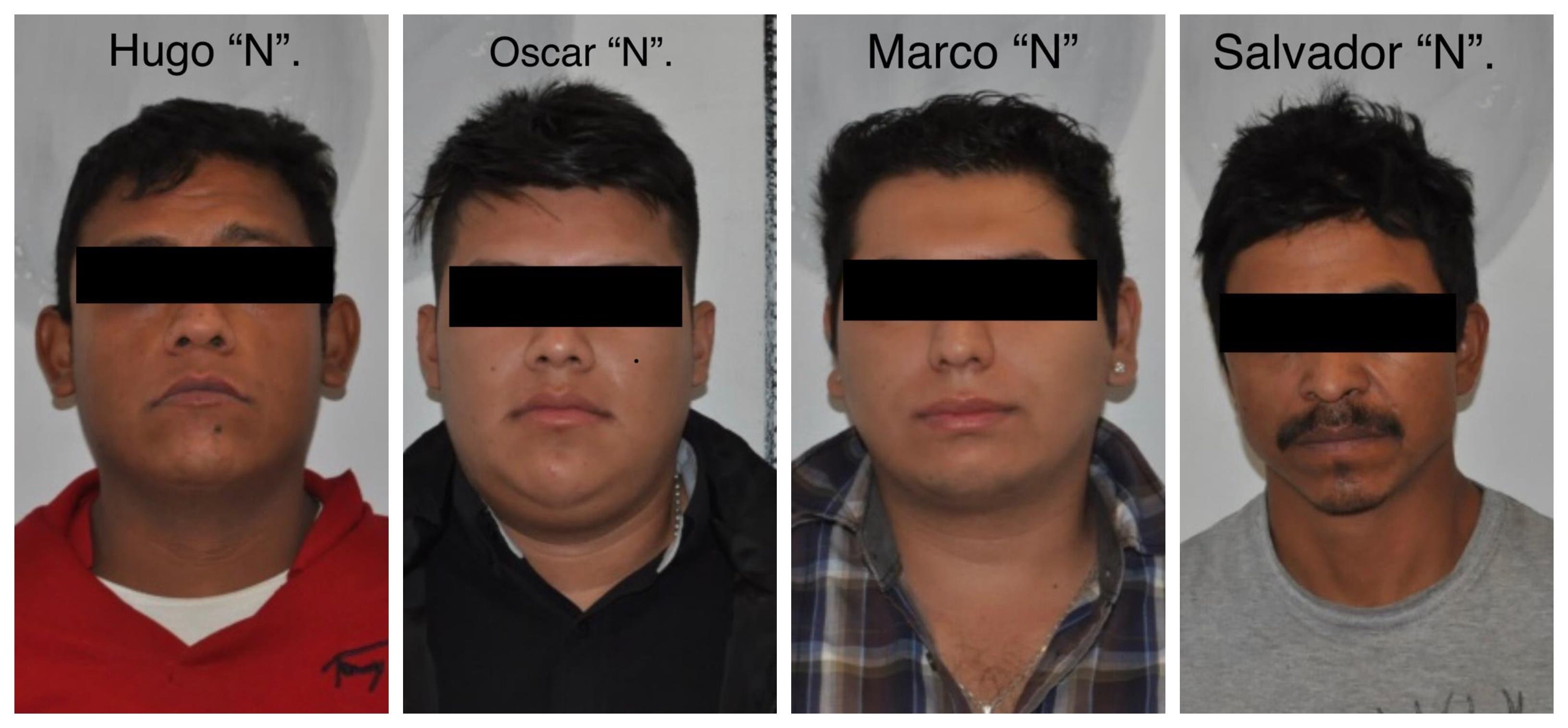 Al verificar el objeto que arrojaron sobre la cinta asfáltica, se confirmó que se trataba de una cabeza humana; por ello quienes dijeron llamarse Oscar Daniel “N”, de 20 años; Salvador “N”, de 38 años; Marco “N”, de 22 años; y Hugo “N”, de 30 años; fueron detenidos y puestos a disposición del Ministerio Público del Fuero Común.