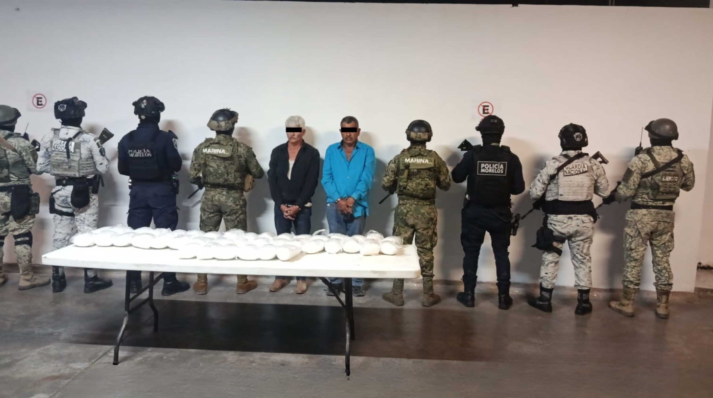Con casi 40 kilos de “cristal”, con un valor aproximado de 8 millones de pesos, fueron capturados dos sujetos por agentes estatales y federales, la madrugada de este sábado.