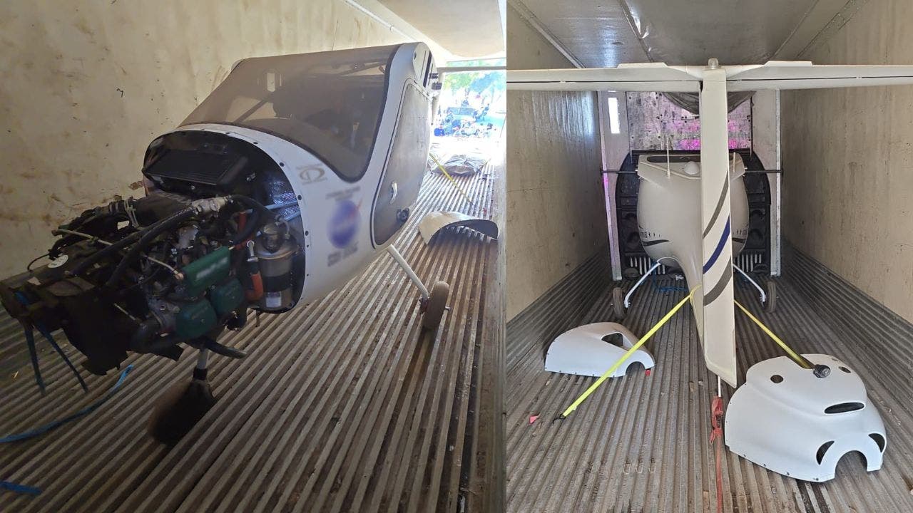 Tras realizar una revisión exhaustiva del vehículo, los guardias ubicaron una avioneta desmantelada en el interior de la caja. Ante la falta de permisos o documentos que acreditaran la legalidad del traslado, los dos sujetos fueron detenidos de inmediato.