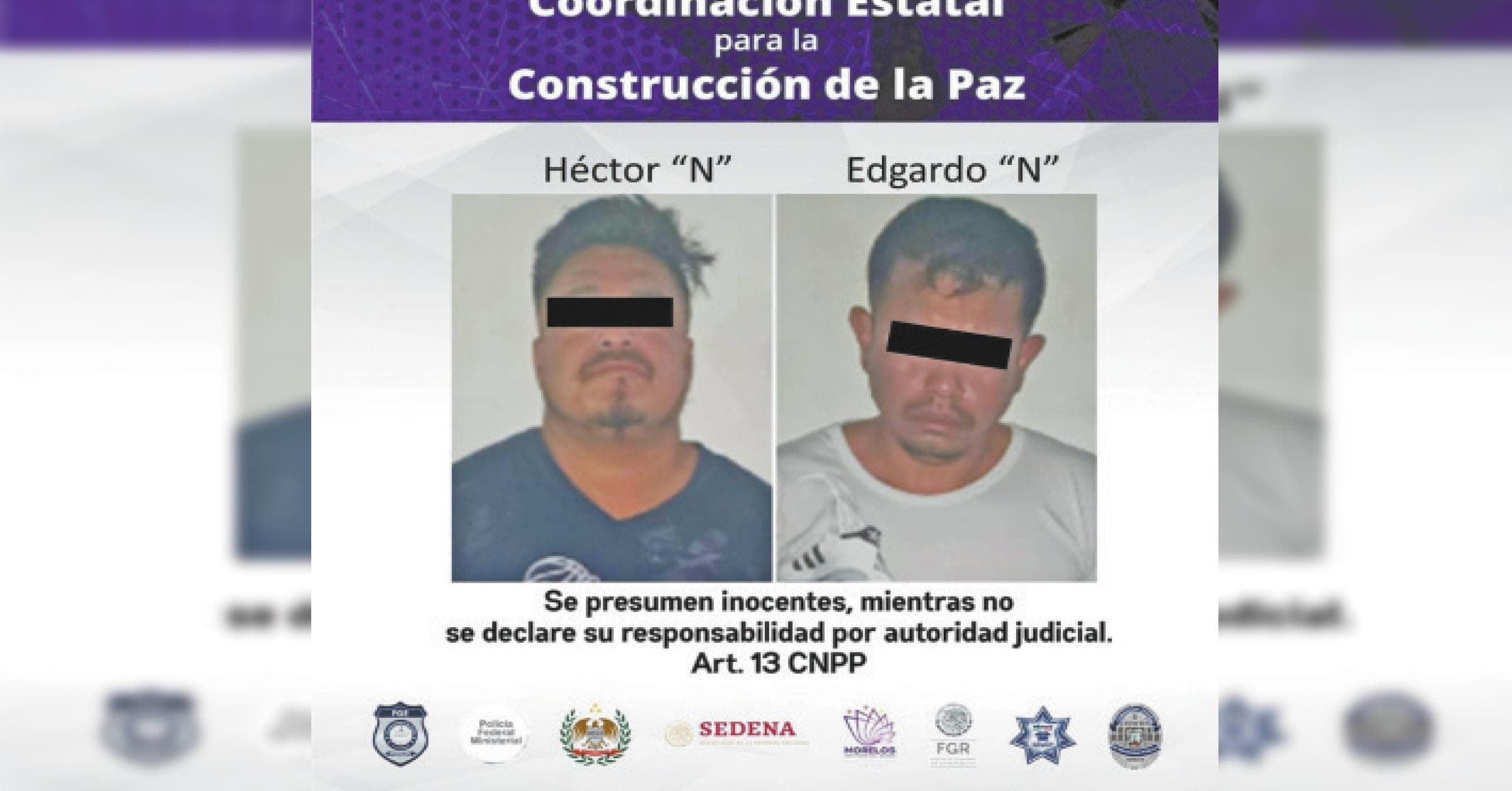Emiliano zapata, MORELOS .- Dos sujetos fueron detenidos en el poblado de Tezoyuca luego de que fueron acusados de haber abusado sexualmente de una joven de 18 años.