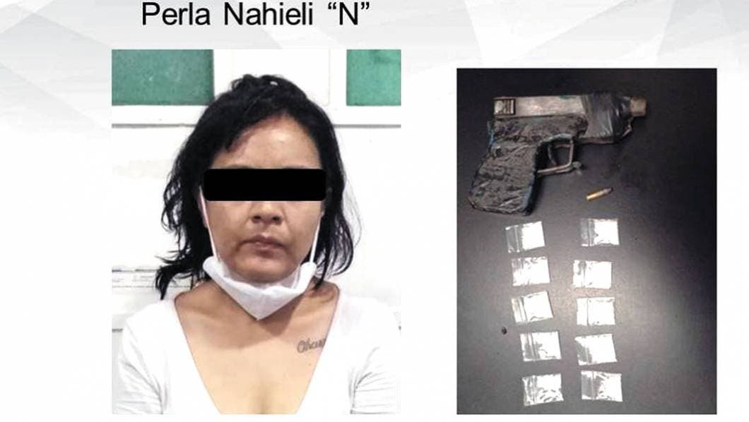 La detenida es Perla Nahieli, de 29 años, quien fue puesta a disposición del Ministerio Público para que determine su situación legal por delitos contra la salud y violación a la Ley Federal de Armas de Fuego y Explosivos.