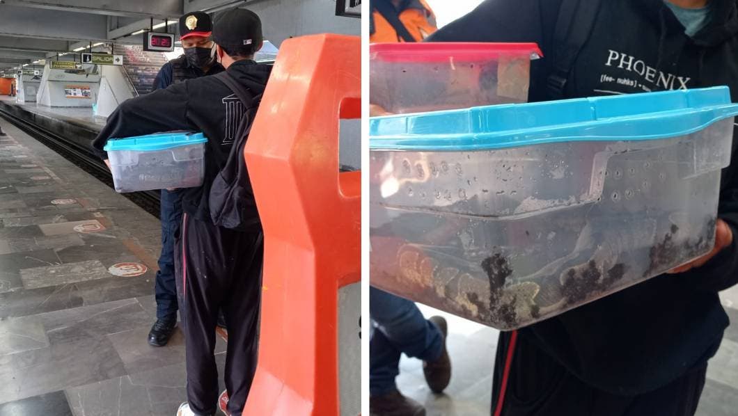 La tarde de este martes, personal de seguridad encargada de la estación Universidad de la Línea 3 del metro de la Ciudad de México, detectó a un usuario que transportaba una serpiente en un contenedor.