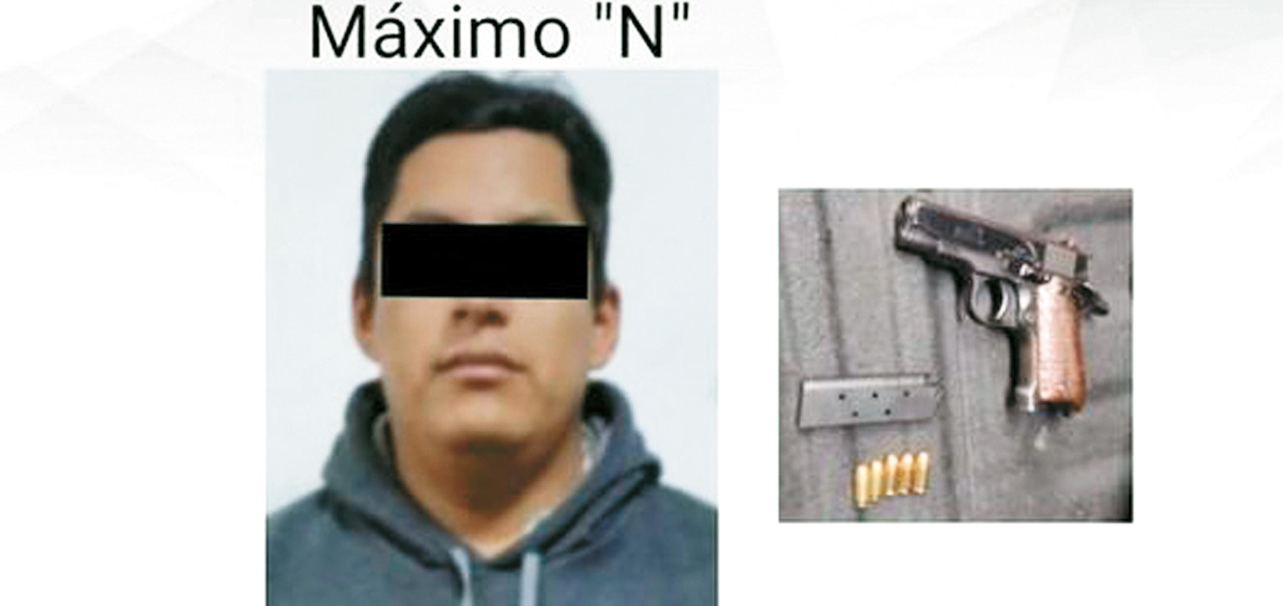 Al ser revisado, a Máximo le encontraron una pistola calibre .380 con cinco cartuchos útiles, la cual llevaba fajada a la cintura, por lo que quedó a disposición del Ministerio Público por el delito de portación de arma de fuego.