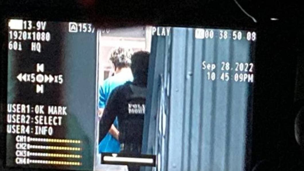 Alrededor de las 10:23 horas, el ex edil abandonó el Hospital Morelos, ataviado con una bata azul, y esposado.