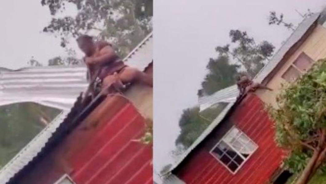 El video, compartido en la plataforma X, muestra a la mujer sentada sobre el techo de lámina de su casa, aferrándose con las manos para evitar que se volaran debido a los fuertes vientos del huracán. Aunque el video dura apenas 25 segundos, se escucha la voz de otra mujer, aparentemente su hija, pidiéndole que se baje. Sin embargo, la mujer en el techo ignora las súplicas y continúa aferrada a las láminas.