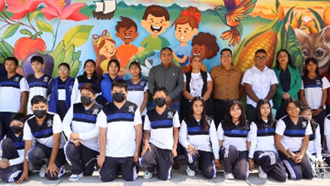 El alcalde de Emiliano Zapata, Santos Tavarez García, llevó a cabo la develación del “Mural por la Paz” en la Escuela Secundaria José Martí, obra colectiva elaborada por alumnos y el artista Saúl Ocampo Reyes, en el marco de la Jornada Nacional de Murales por la Paz.