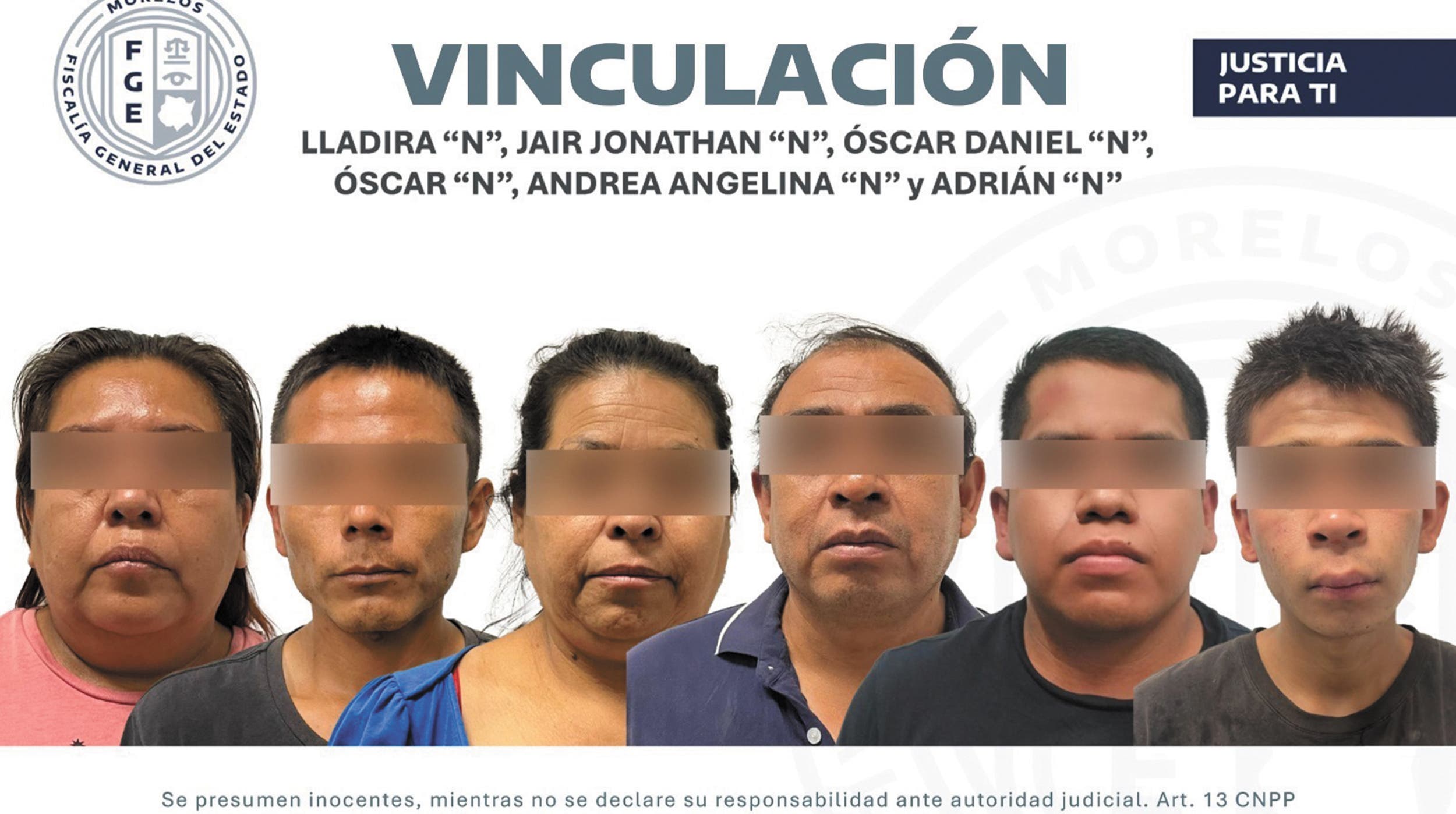 En el caso de Óscar “N” y Lladira “N”, un juez decidió vincularlos a proceso por delito contra la salud; y Jair Jonathan “N”, Raquel “N” y Bethuel “N” fueron procesados por secuestro equiparado y delito contra la salud.