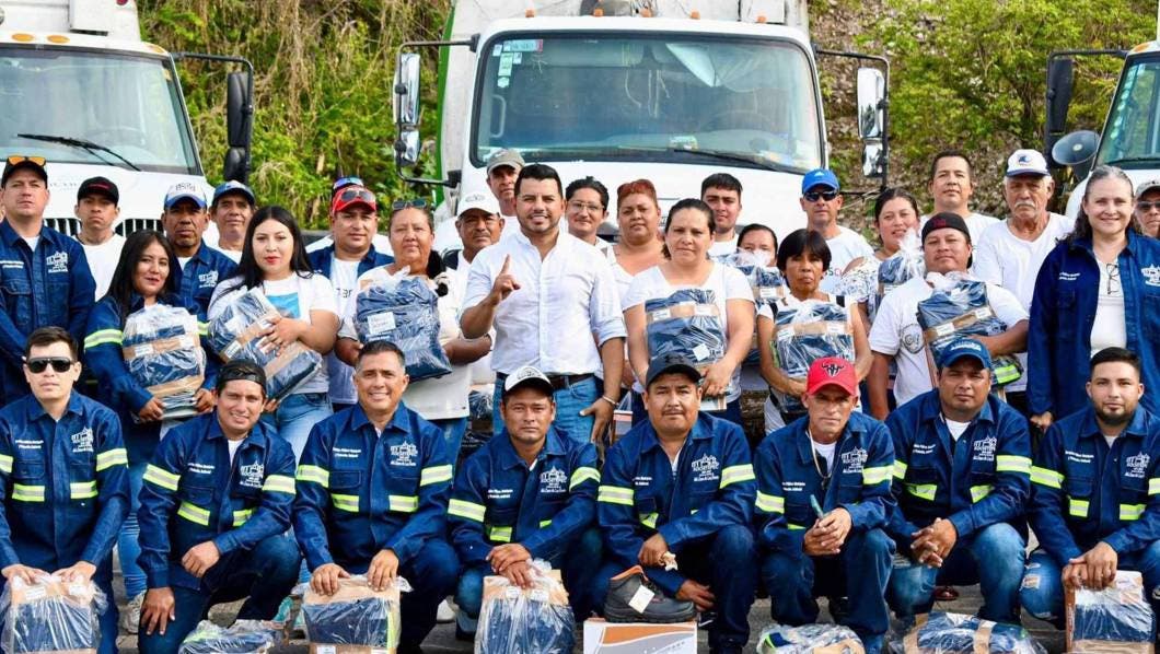 El presidente municipal de Xochitepec, Roberto Gonzalo Flores Zúñiga, entregó botas y uniformes a trabajadores de la Dirección General de Servicios Públicos Municipales y Protección Ambiental del ayuntamiento de Xochitepec.