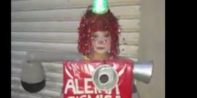 La niña que aparece en dicho video se vistió de alerta sísmica, ella porta una una caja en la que se lee: alerta sísmica, cara pintada de blanco con nariz roja, una peluca con mechones rojos, bocinas y una lámpara estilo patrulla en la cabeza.