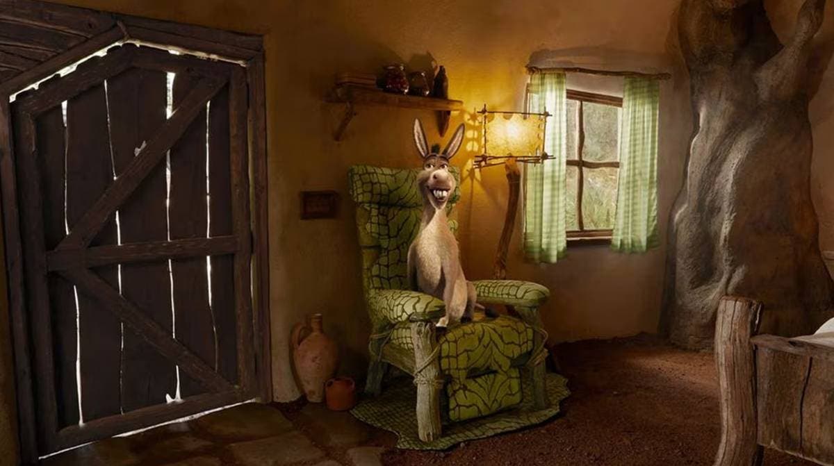 La historia detrás de esta experiencia es tan encantadora como la película misma. Según Airbnb, "Érase una vez, un burro muy parlanchín aceptó cuidar el hogar de su mejor amigo en su ausencia. Antes de volver a su casa, burro invitará a huéspedes locales y también de muy, muy lejano a dormir como un auténtico ogro en la Ciénaga de Shrek, solo disponible en Airbnb".