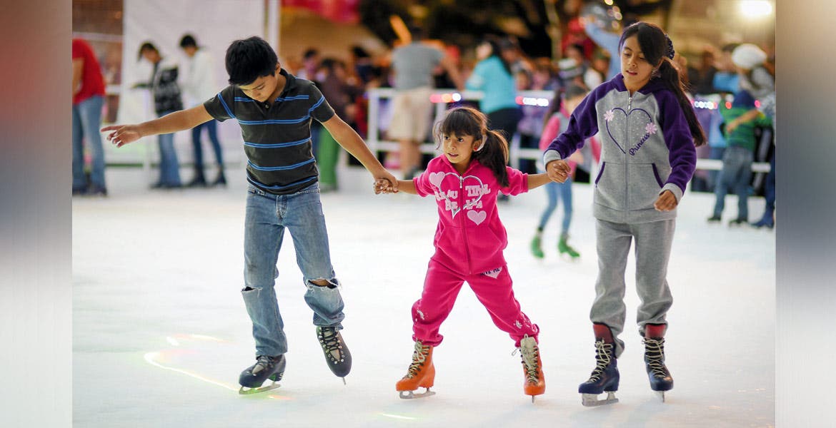 Cuernavaca, MORELOS.- Familias provenientes de distintos municipios del estado, visitantes y turistas, siguen disfrutando de la pista de patinaje sobre hielo y tobogán congelado que el Gobierno de Morelos instaló en la Plaza de Armas "Emiliano Zapata", junto al monumental árbol y villa navideña.