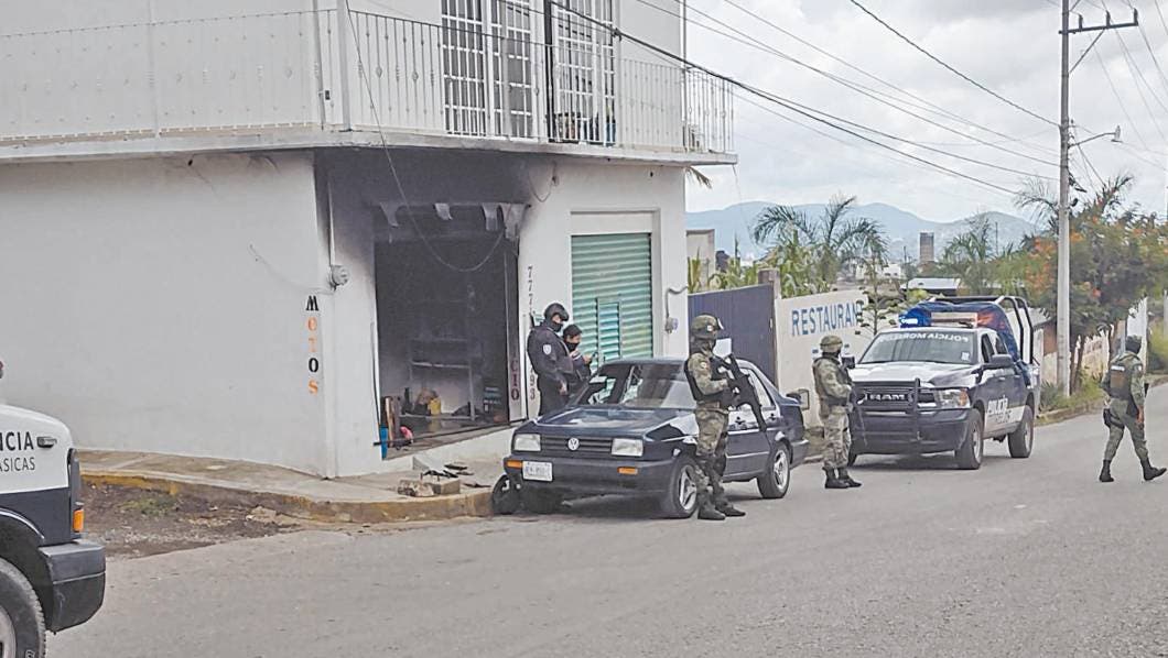 Cuernavaca, MORELOS.-Un taller de motos fue incendiado y atacado a balazos por sujetos armados, además de que un auto que estaba estacionado quedó con varios impactos de bala.