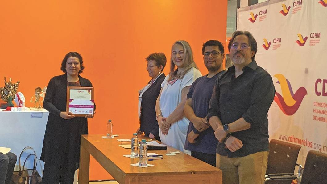 La artesana Miriam Aguilar Romero recibió un reconocimiento de la Comisión de Derechos Humanos de Morelos por obtener el primer lugar en el concurso para el diseño y elaboración de la estatuilla del Premio Estatal de Derechos Humanos “Modesta Lavana Pérez”.