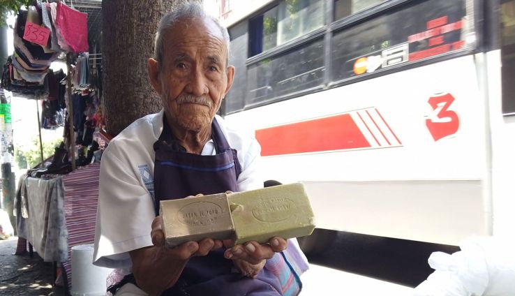 Señala que él es uno de los pocos comerciantes que aún venden este producto, pero en la década de los 80 era muy común que la gente proveniente de Guerrero vendiera este jabón en las calles de Cuernavaca.