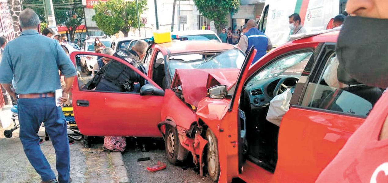 Un taxi Tiida que iba detrás del Chevy también sufrió daños, mientras que paramédicos del CRUM trasladaron a un hospital a los ocupantes del auto afectado, ya que resultaron lesionados.