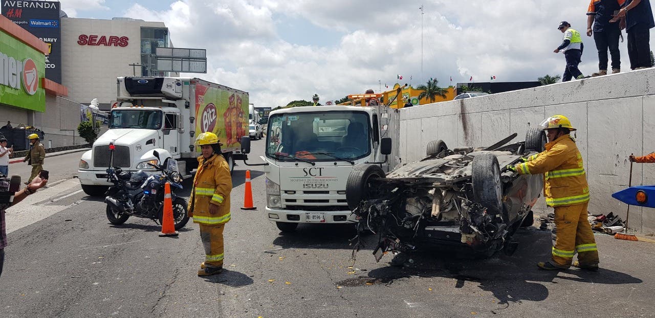 Una persona de la tercera edad y una mujer resultaron lesionadas luego de que su auto volcara cuando se dirigía hacia la Ciudad de México por el Paso Express.